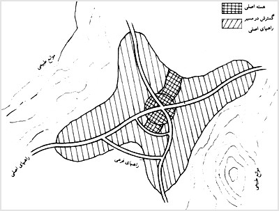 ۱. مرکز تجارى شهر ، ۲. عمده فروشى و صنایع سبک ، ۳. منطقه مسکونى با درآمد کم